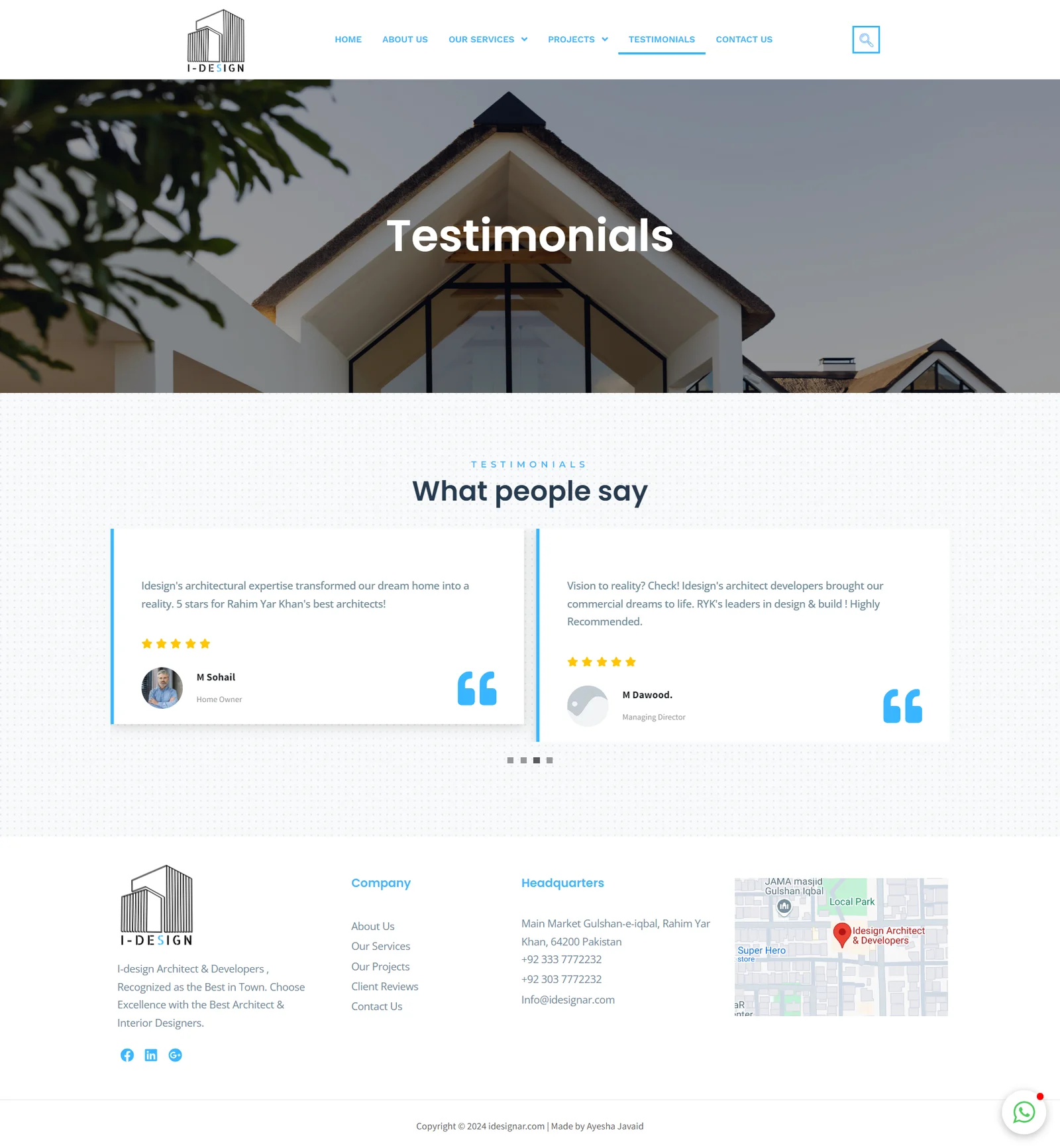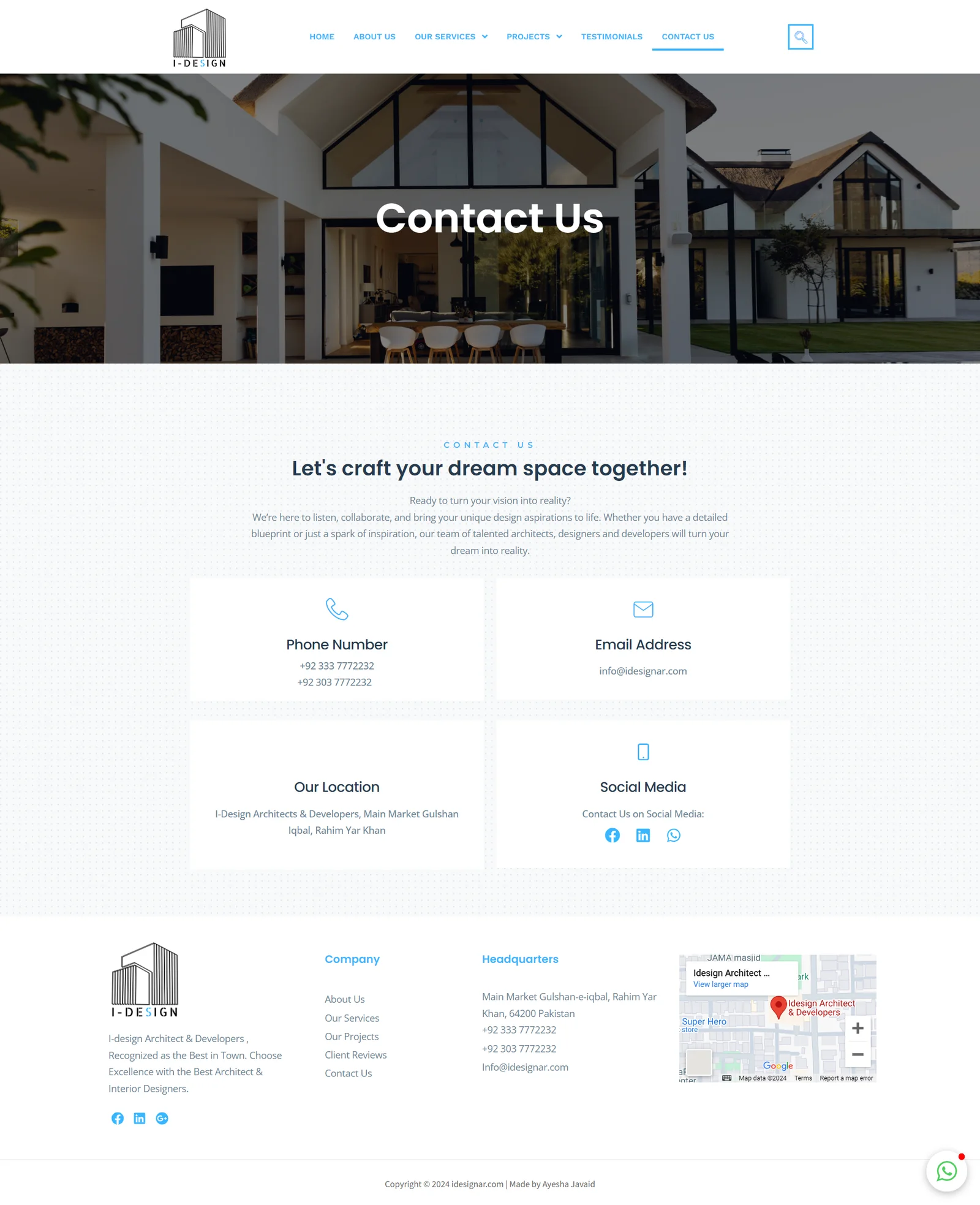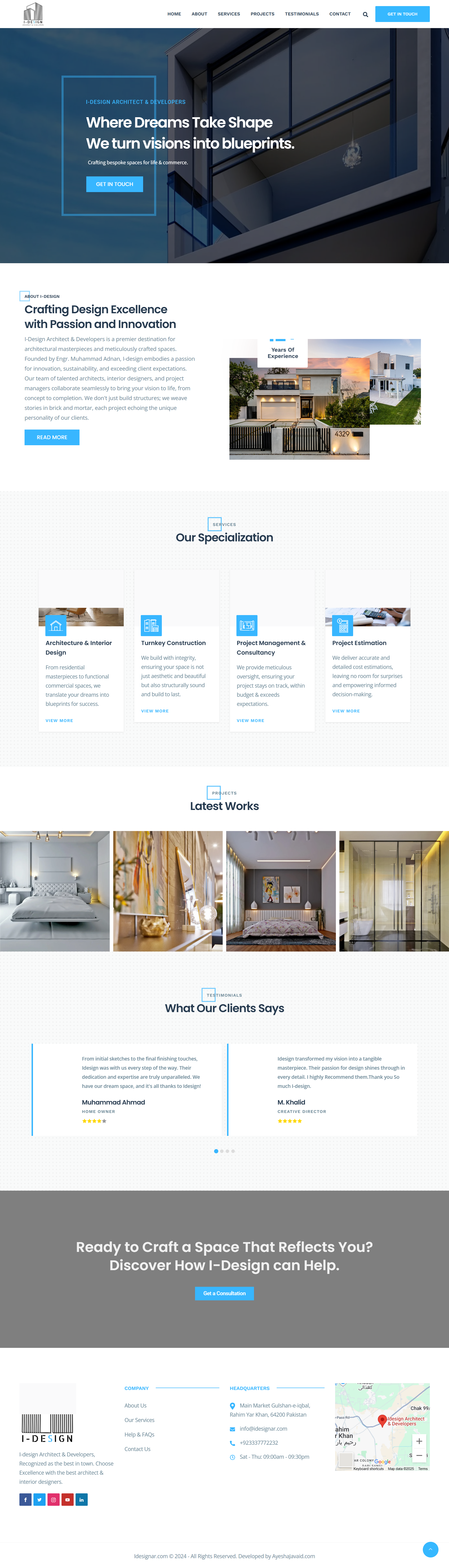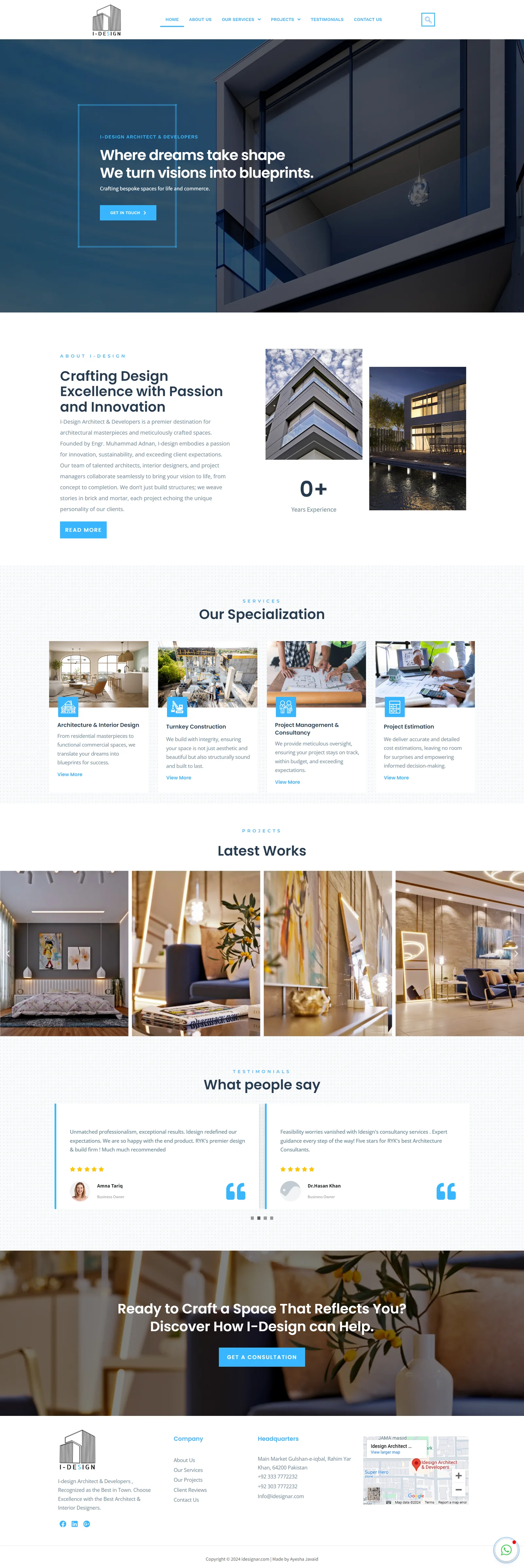 I created a sleek, professional website for I-Design Architects that captures their expertise and beautifully presents their remarkable architectural and interior design projects. The design was tailored to match the client’s vision for a clean, aesthetically refined look that aligns seamlessly with their brand identity while placing their impressive portfolio at the forefront.